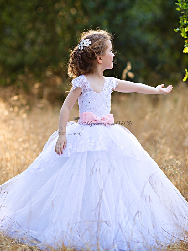 Gorgeous white flower girl dress with