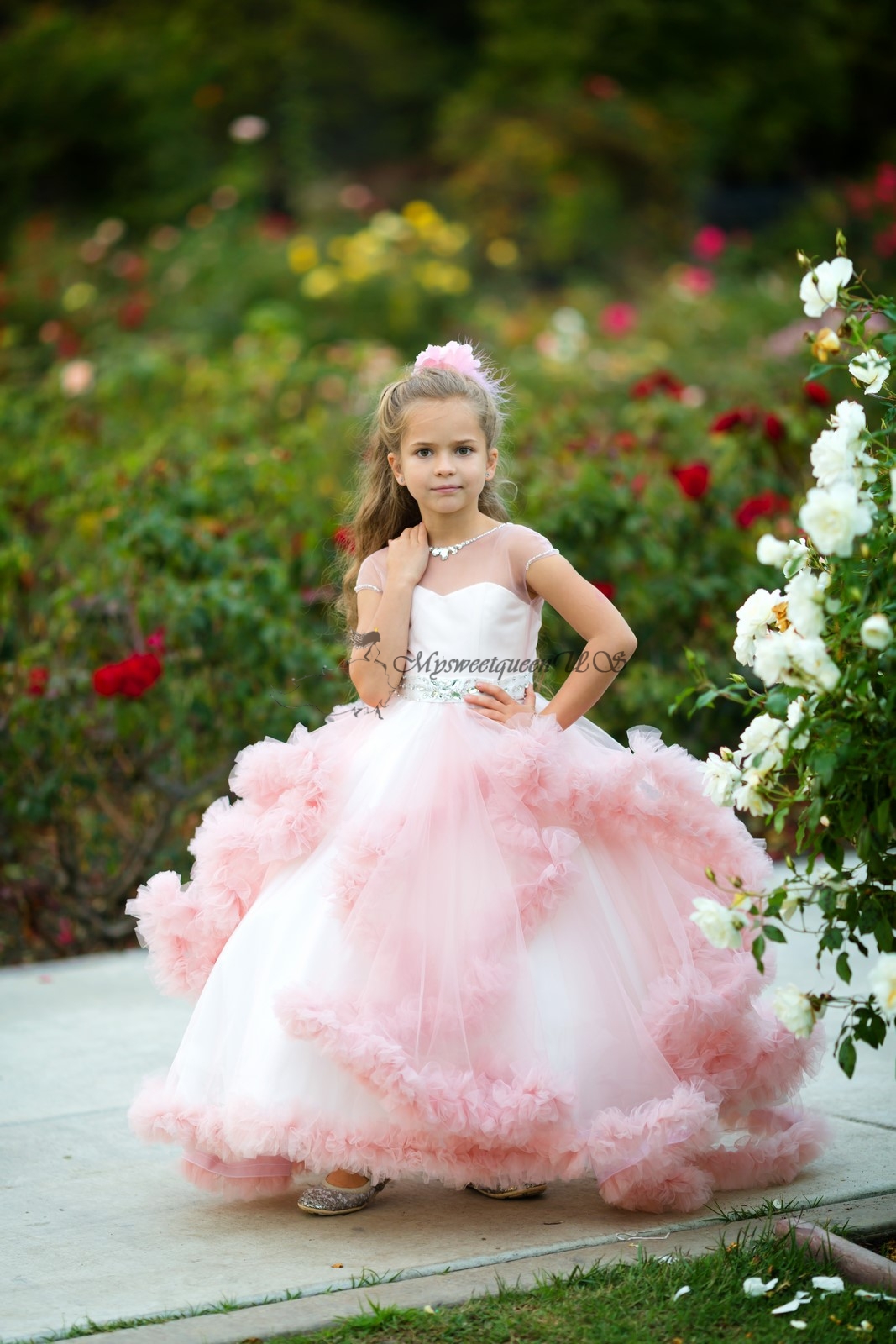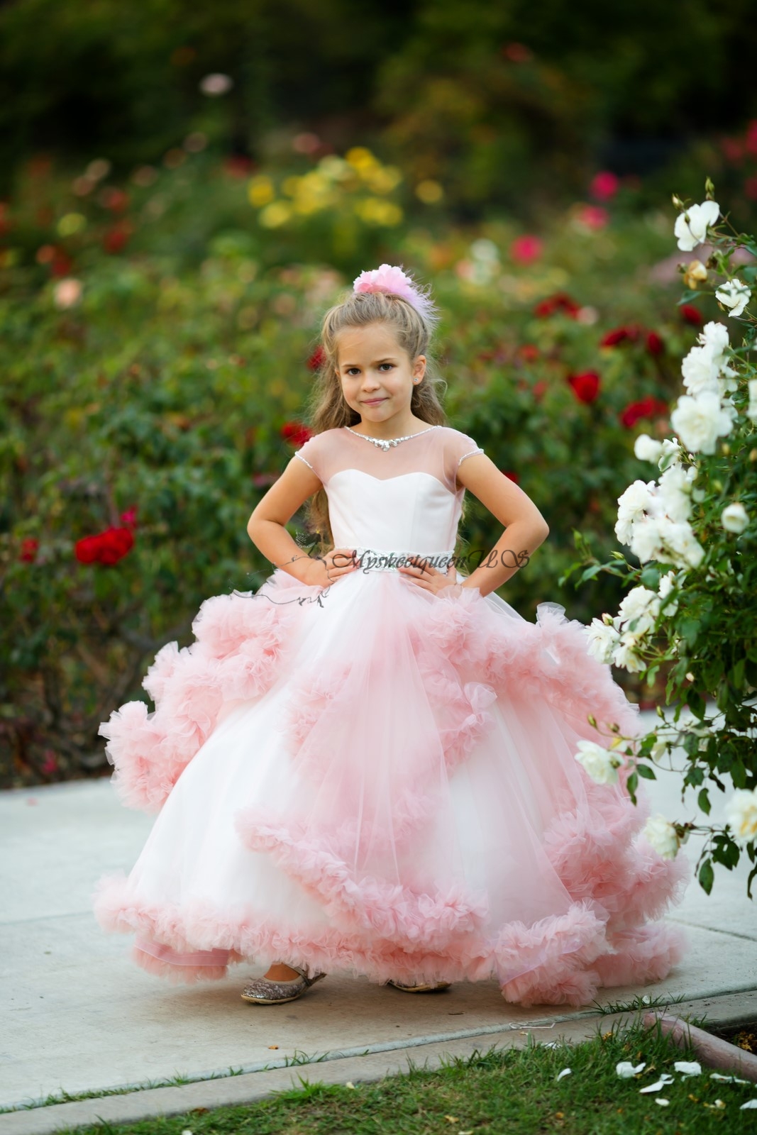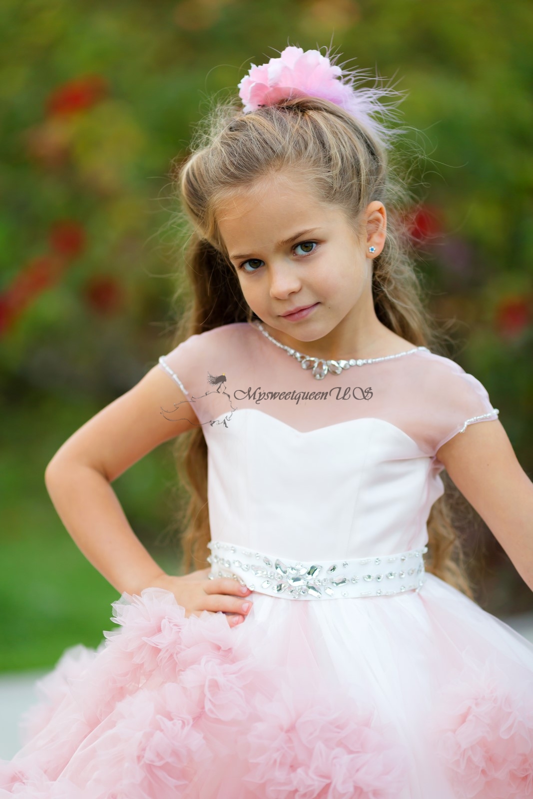 This flower girl dress is made of soft tulle to achieve the most luxurious look while being comfortable to wear for the baby.